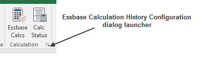 By default, the total number of calculations retained in the history is unrestricted. The Essbase Calculations History Configuration dialog, which is opened using the Calculations group dialog launcher, allows the user to specify the maximum number of calculations retained in the history. The dialog is opened by clicking the Calculation group dialog launcher.